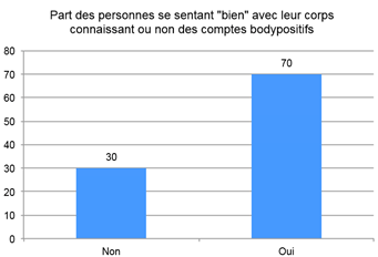 En outre, 70% des utilisatrices interrogées se sentant « bien » avec leurs corps connaissent des comptes bodypositifs. Ainsi, la consommation de contenus bodypositif ne s’adresse pas uniquement aux personnes mal à l’aise avec leur corps.